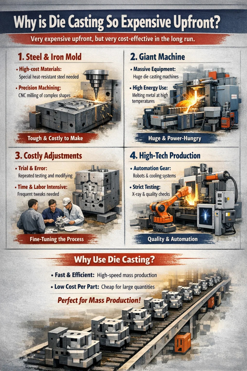 Materiales caros: Estos moldes deben estar hechos de acero especial resistente al calor, muy caro; de lo contrario, se deformarán o agrietarán después de unos pocos usos.